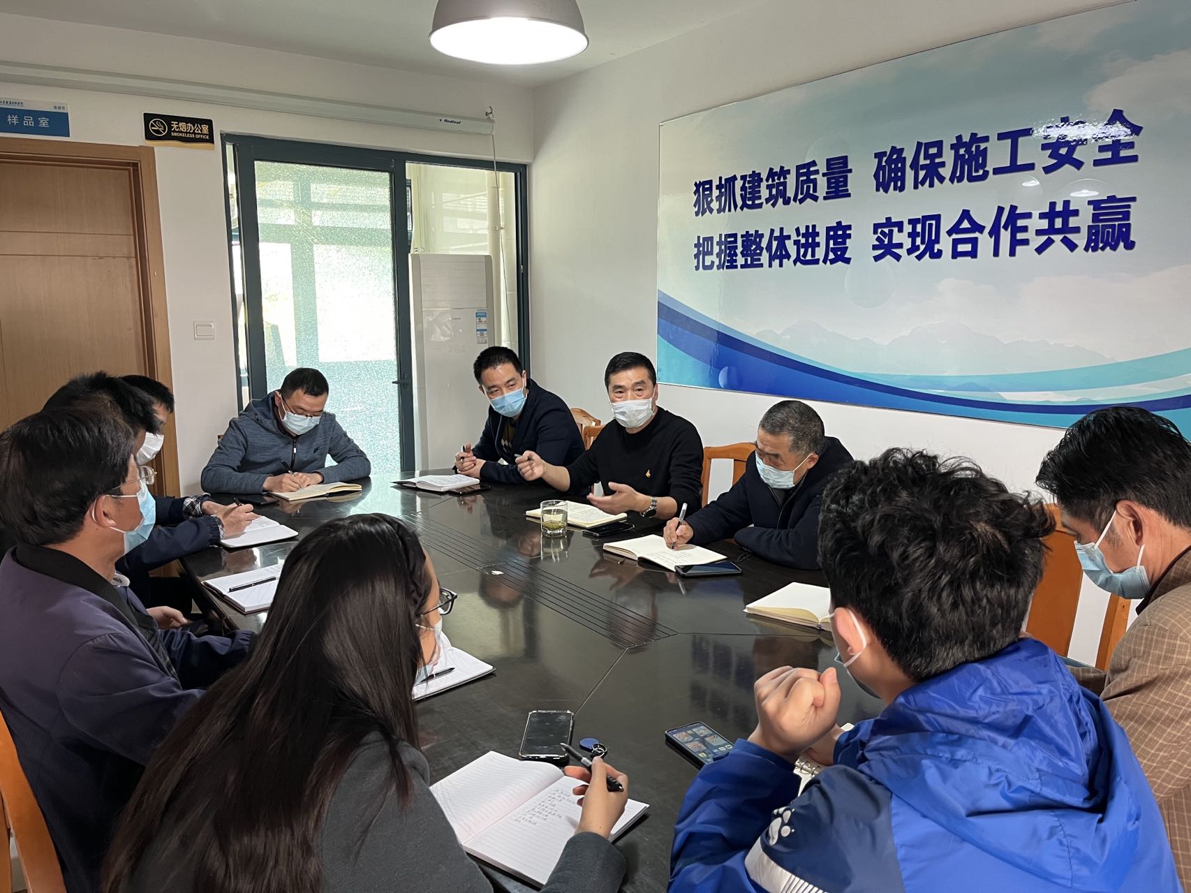 2022年3月15日中午11点,基建处召开疫情防控专题会议,部门全体人员参会。